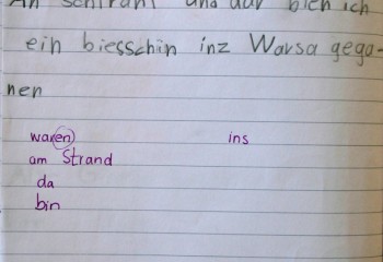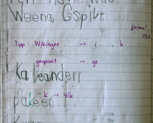 Die Arbeit am schriftlichen Wortschatz ist also von Anfang an mit der Reflexion über schriftsprachliche Strukturen verbunden. Diese vollzieht sich einerseits im gemeinsamen Gespräch über Schreibweisen in der Klasse (s. Rechtschreibgespräche in Klasse 1 und 2, s. Rechtschreibgespräche ab Klasse 2) oder mit einem Partner beim Schreiben im Tagebuch, andererseits in der individuellen Übung an einzelnen orthographischen Bereichen (s. Arbeit an individuellen Schwerpunkten mit der Rechtschreibbox). Wortschatzarbeit ist mehr als das Auswendiglernen von Schreibweisen.