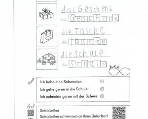 - Texte, von Kindern aus dem 2. Schuljahr verfasst und als Lesestütze langsam eingelesen (s. QR-Codes) - zugleich Schreibanregungen