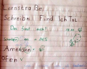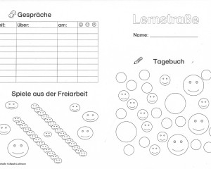 Eine andere Form der Organisation ist die "Lernstraße". Auf einem Plan für einen längeren Zeitraum (mehrere Monate) erhalten die Kinder eine Übersicht über die verschiedenen Lernbereiche und Aufgaben, die sie in einer festgelegten Zeit pro Woche bearbeiten sollen. So wie sich unterschiedliche Fahrzeuge auf Straßen unterschiedlich schnell vorwärts bewegen, so auch die Kinder auf der Lernstraße. Jeder arbeitet gemäß des eigenen Könnens. Der im Download zu findende Lernstraßenplan wurde nach den Herbstferien im 1. Schuljahr eingesetzt. Er umfasst neben den Kompetenzbereichen "Schreiben" und "Rechtschreiben" auch Aufgaben aus den Bereichen "Lesen" und "Mündliches Sprachhandeln". Für die Lernstraße standen den Kindern zwei Stunden an zwei verschiedenen Tagen der Woche zu Verfügung. Das Schreiben im Tagebuch war dabei verbindliche Aufgabe am ersten Tag, die Bearbeitung einer individuell zugewiesenen Übung aus der Rechtschreibbox Pflichtaufgabe am zweiten Tag. Die Lernstraße ist detailliert in dem Buch "Individuelle Lernwege im Schreiben und Rechtschreiben, Band I: Klassen 1 und 2, Seite 95 ff) beschrieben. Download