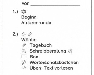 Wer auf die Arbeit mit einer Fibel verzichtet und das Schreiben zugleich als Absprung zum Lesen nutzt (Jürgen Reichen: Lesen durch Schreiben), der muss dafür sorgen, dass Kinder regelmäßig mit Hilfe der Anlauttabelle in ihrem Tagebuch schreiben. In den ersten Wochen sollten so weit wie möglich täglich kleine Einheiten für das Schreiben eingeplant werden. Nach einiger Zeit reichen drei, im weiteren Verlauf des 1. Schuljahres zwei Schriebzeiten oder schließlich - spätestens im 2. Schuljahr - eine fest im Stundenplan verankerte wöchentliche Schreibzeit. Sobald Kinder ihre Texte vorlesen können, starten die Autorenrunden zu Beginn der Schreibzeit, bei der die Texte der Kinder wieder in die Gruppe gespielt werden. Weiter Bausteine können diese ergänzen - etwa die verschiedenen Angebote zum individuellen Rechtschreibtraining (Training an individuellen Schwerpunkten mit der Rechtschreibbox, Wortschatzarbeit). Vorschläge für den ritualisierten Ablauf der Schreibzeit - auch für die Hand der Kinder bzw. den Klassenraum - finden Sie im Downloadbereich.