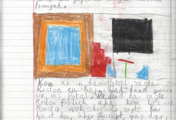 Vier Ausschnitte aus einer Autorenrunde zu Beginn des 3. Schuljahrs zum Text "Die Reise in die Gruselwelt" von Michel, verfasst im 2. Schuljahr.