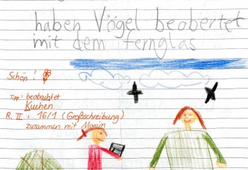 Interviews mit Erstklässlern zeigen, wie wichtig Kindern das Schreiben werden kann, wenn sie von Anfang ihre eigenen Texte schreiben und wie sehr sich die Kinder auf genau diese Momente des Schulalltags freuen. Dass sie über das Schreiben eigener Texte inhaltsreiche und außerordentlich gut formulierte Texte schreiben lernen, zeigen Textbeispiele aus dem 1. Schuljahr (s. Text: Die Eule, geschrieben am Ende des 1. Schuljahres).