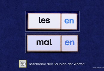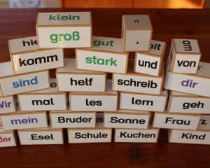 Einfache Satzkonstruktionen ("Ich male.", "Ich gehe." bzw. "Du gehst" etc.) können durch konkretes Bauen und Sprechen der Sätze ebenso vermittelt werden wie umfassendere Formulierungen (wie "der kleine Hund"). Auch für den Auf- und Ausbau des Wortschatzes eignen sich die Wortbausteine.