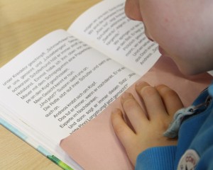 Jederzeit steht ein selbst gewähltes Buch zum Lesen zur Verfügung. Als "Tischbuch" wird es unter dem Tisch verwahrt, sodass es schnell in die Hand genommen werden kann, um darin zu lesen oder damit zu arbeiten.