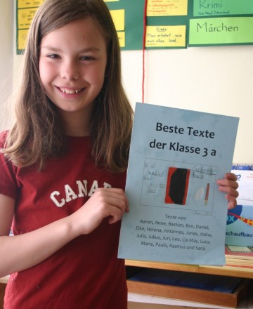 Jedes Kind wählt aus seinen eigenen Texten aus dem Tage- bzw. Schreibbuch den seiner Meinung nach besten Text aus, überarbeitet ihn in der Schreibkonferenz und gestaltet ihn für ein gemeinsames Sommerlesebuch. Ein Einleitungsschreiben der Lehrerin bietet den Schülern/-innen und deren Eltern zusätzlich eine Zusammenfassung des im Unterricht Erarbeiteten.
